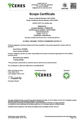 Parts of our assortment are certified according to Global Organic Textile Standard (GOTS) and Organic Content Standard (OCS). For the product-specific assignment, please refer to the product descriptions.