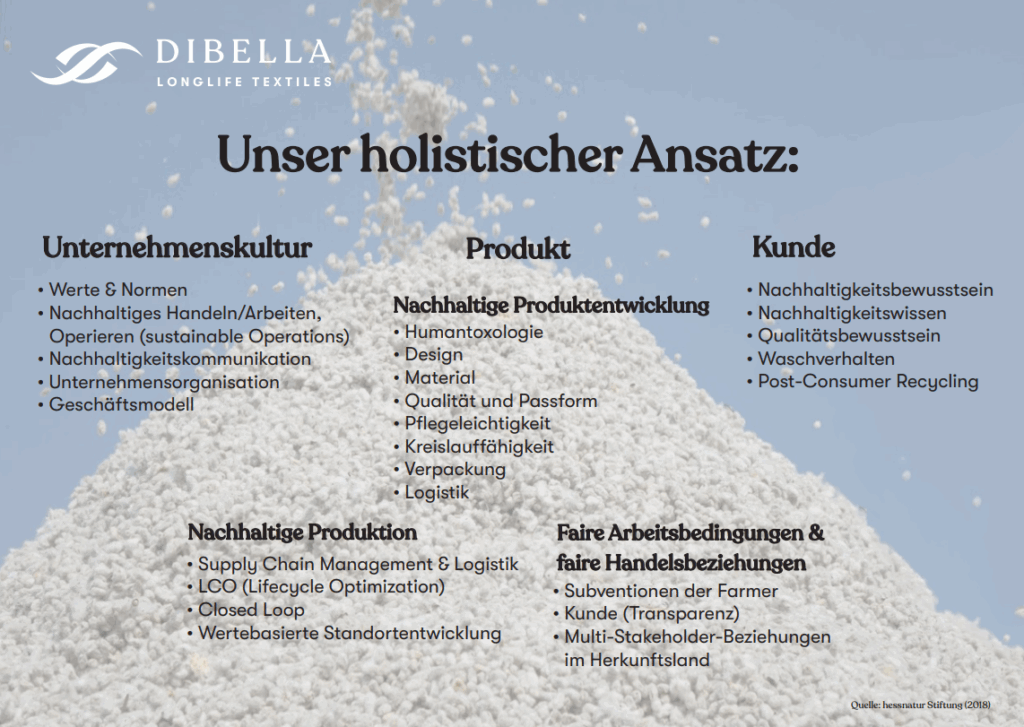 Wir bei Dibella leben einen Holistischen Ansatz und sehen darin unsere individuelle Definition von Nachhaltigkeit, die unser tägliches Handeln maßgeblich bestimmt und prägt
